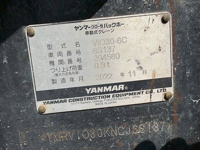 vio30-6 クレーン仕様 クイックヒッチ スケルトンバケツ付 【メーカー】ヤンマー 【機種】vio30-6 【仕様】クレーン仕様 【機番】204560 【年式】2022年 【アワーメーター】 【価格】¥SOLD万円(税別) 【備考】クイックヒッチ スケルトンバケツ付 ミニ油圧ショベル